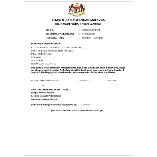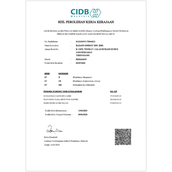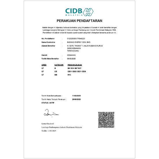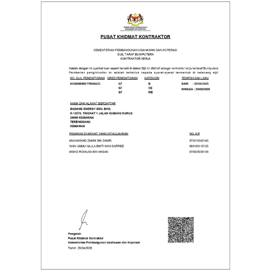 Badang is committed to maintaining the highest standards of safety, quality, and industry compliance. Our certifications and accreditations reflect our dedication to excellence and provide assurance to clients and partners that every project is delivered with professionalism and integrit