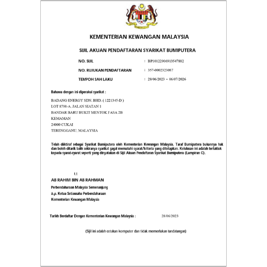 Badang Energy maintains a resilient financial foundation, strengthened by consistent growth and sound governance. Backed by established banking partners, we have access to financing facilities that enable us to confidently undertake projects valued from RM500 million and beyond. This solid financial strength not only assures our clients and partners of timely, reliable delivery, but also reinforces our ability to reinvest in technology, infrastructure, and talent—ensuring sustainable growth for the future